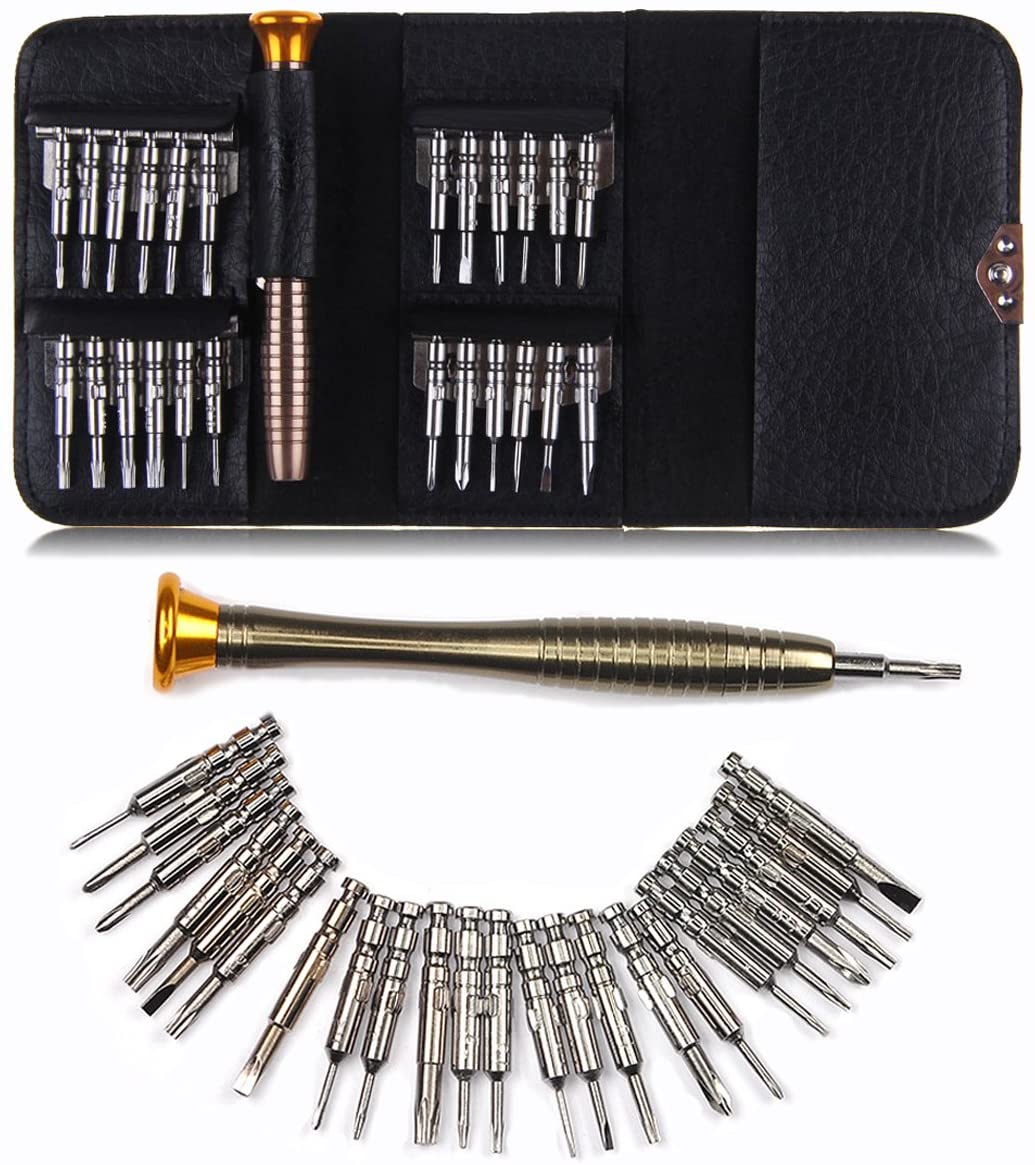 2. Tamaño de la cabeza de diferentes trajes diferentes Uso. 25 cabezas de destornillador son apto para desmontar ordenadores, smartphones,, anteojos, relojes, etc. Todos los cabezales de destornillador han sido procesados con alta temperatura.