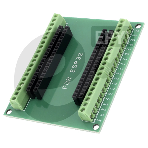 La Placa de Expansión para ESP32 de 38 pines es un accesorio sencillo pero muy práctico. Consiste en un PCB con un zócalo hembra de 38 pines donde se inserta el módulo ESP32 (como el ESP-WROOM-32, NodeMCU-32S u otros compatibles de 38 pines). Cada pin del ESP32 está conectado a un borne atornillable (terminal block) claramente marcado en la placa.
