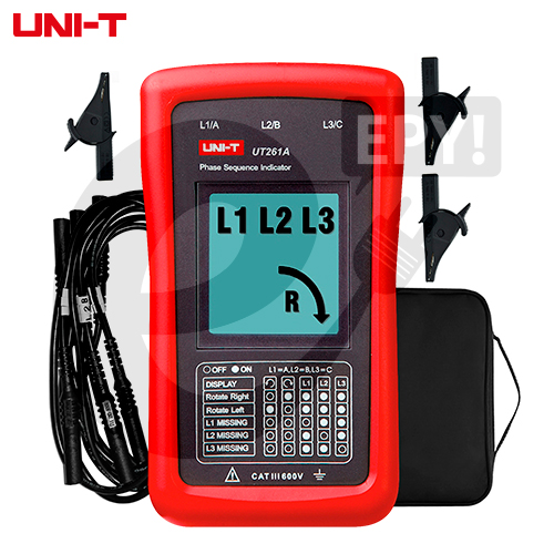 Con el UT261A puedes determinar rápidamente el orden de rotación de las fases (R, S, T o 1, 2, 3) en sistemas de hasta 600V AC (categoría CAT III). Además, detecta falta de fase, evitando que pongas en marcha un equipo que podría quemarse por desbalanceo. Sus tres indicadores LED y su pantalla LCD te muestran el resultado de forma clara e intuitiva.
